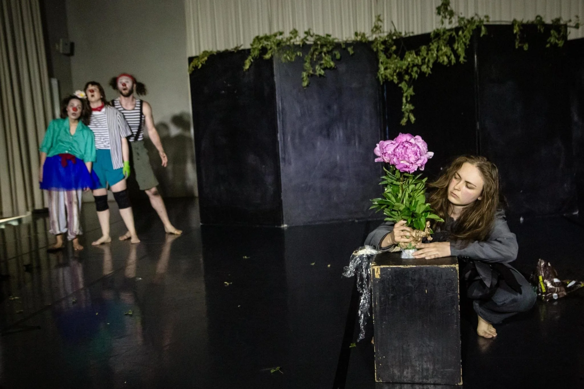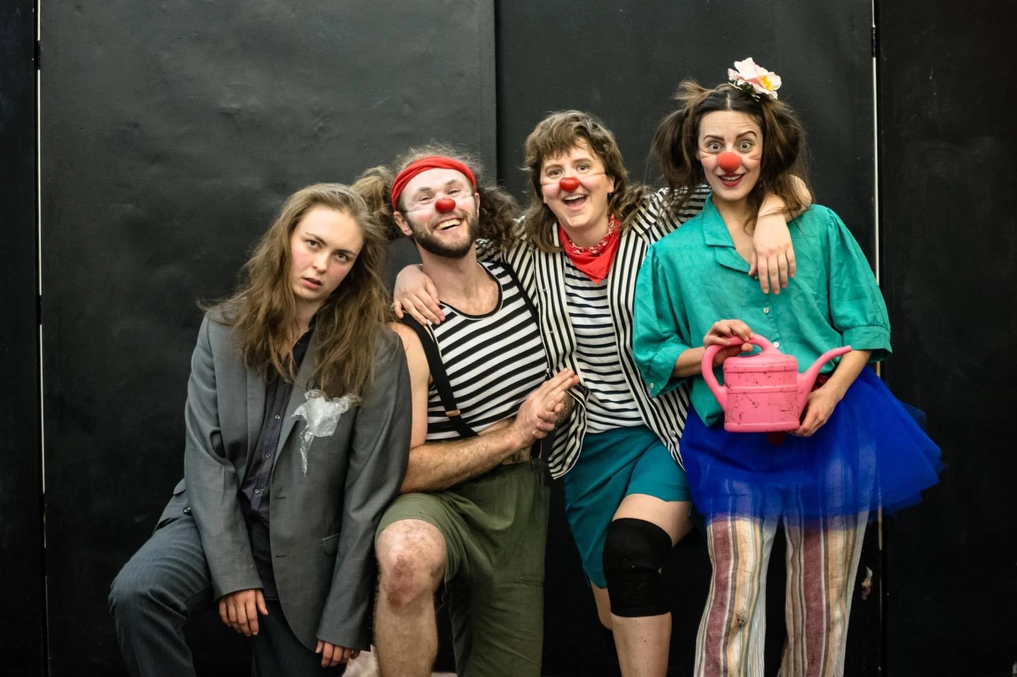 The Independent Research Project (IRP) is the capstone project of the second year of the Master of Fine Arts program at Rose Bruford College and Arthaus.Berlin. The process involved an independent, months-long research project that I completed in Berlin. During the final two weeks, I collaborated with a small ensemble of three actors, including Maria Sotiropoulou, Sean Lang, and Sigrid Norheim Ørntoft, who worked with me to bring my research into the world of the clown and onto the stage.